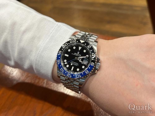 DAYTONAもカッコイイなと思いつつ、もともとGMT-MASTER II 126720VTNRが気になっていたので試着させてもらい、カラーバリエーションが豊富なので若干揺さぶられましたがBLNRのジュビリーブレスが一番気に入ったので即決しました!