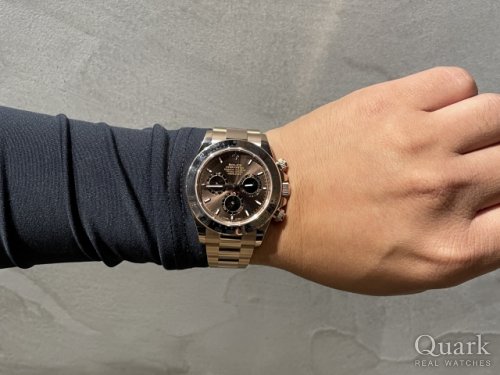 T様 この度は数ある時計店の中からクォーク銀座店をご利用いただき誠にありがとうございます。この度ご購入いただきました、DAYTONA Ref.126505は落ち着いた上品な印象が特徴的なチョコレート文字盤に加え、ブレス無垢のラグジュアリーな存在感が堪らなく美しいモデルでございます!今後の資産性も楽しみなモデルですので大切にご使用いただけますと幸いです!ブレスレットの洗浄や調整も無料で行っておりますので、お近くにお越しの際は是非遊びにいらしてくださいませ。お使いいただく上で何かご不明な点等ございましたら、また細谷地までご相談ください。今後とも末永いお付き合いの程よろしくお願いいたします。