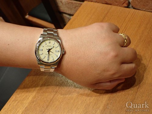 T様 はじめてのご利用から20年、永く弊店をご利用いただき大変感謝申し上げます。新作のオイスターパーペチュアルは、どのカラーもまだまだ入荷が少ないのですが、タイミングよくご案内することができ、嬉しく思います。今回お選びいただきましたベージュダイヤルは、柔らかい雰囲気で腕元をオシャレに演出しますね。T様の多彩なコレクションの中でも、あまりないカラーリングになるかと思いますので、使い分けを楽しみながらご愛用いただけますと幸いです。また近くへお越しの際は、遊びにいらしてくださいませ。今後ともクォーク神戸店をよろしくお願いいたします。