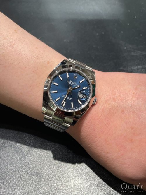 初ロレックスおめでとうございます!Ref.126300ブルーは時計全体の鏡面仕上げが非常に美しく