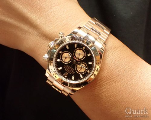 K様 この度はクォーク神戸店をご利用くださり、誠にありがとうございます。お買い上げくださいましたデイトナ Ref.116505ブラックダイヤルはエバーローズゴールドとの相性が非常に良く、高級感溢れるモデルです。金無垢ならではの華やかさもありながら、品もあり、お洒落感のある1本でK様にとても良くお似合いでございました。また、ご相談いただいた時に、ちょうどお子様の生まれ年の個体が入荷するというグッドタイミングも重なり、ご案内した私もとても嬉しく思っております。お持ちのコレクションとの使い分けを楽しみながら末永くご愛用頂けますと幸いです。ブレスレットの再調整はいつでも承りますので、バンプアップされる時期になりましたら是非ご用命くださいませ。K様のまたのご来店心よりお待ちいたしております。