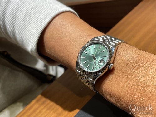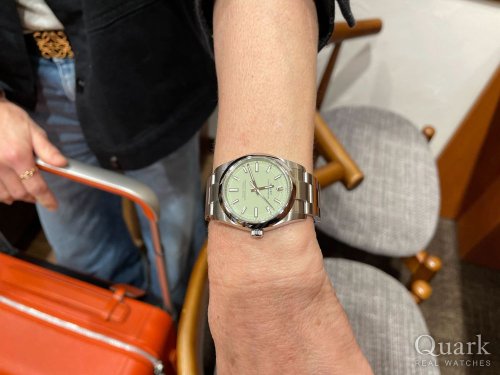 T様 この度はクォーク梅田店をご利用頂きありがとうございました。こちらの不手際でご迷惑をお掛けして本当に申し訳ございません。ご購入いただきました34ミリ径のオイスターパーペチュアルを着用された時のサイズ感や雰囲気は本当に良くお似合いになられていたと思います。またピスタチオカラーはまだ流通量も少ないモデルですのでコーディネートのアクセントでご活用頂けると幸いでございます。また大阪にお越しの際には遊びにいらして下さいませ。お待ちしております。