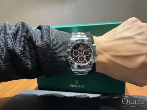 T様 この度は数ある時計店の中からクォーク銀座店をご利用いただき誠にありがとうございます。この度ご購入いただきました、DAYTONA Ref.126505は落ち着いた上品な印象が特徴的なチョコレート文字盤に加え、ブレス無垢のラグジュアリーな存在感が堪らなく美しいモデルでございます!今後の資産性も楽しみなモデルですので大切にご使用いただけますと幸いです!ブレスレットの洗浄や調整も無料で行っておりますので、お近くにお越しの際は是非遊びにいらしてくださいませ。お使いいただく上で何かご不明な点等ございましたら、また細谷地までご相談ください。今後とも末永いお付き合いの程よろしくお願いいたします。