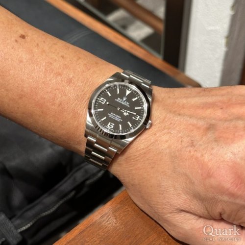 Y様 この度は数ある時計店よりロレックス専門店クォークをお選び頂きまして誠にありがとうございます。またご遠方より当店まで足を運んでいただきまして重ねて御礼申し上げます。現行エクスプローラーは2サイズで展開しておりますので従来の36ミリだと物足りない方も40ミリのボリュームケースであればご満足いただけるデザインに進化しております!幅広い年齢層また性別問わずエクスプローラーは選ばれておりますので飽きることなくこの先楽しんでいただける事間違いないモデルです。Y様に末永くエクスプローラーを楽しんでいただけますようにしっかりとサポートさせていただきますので今後ともロレックス専門店クォークを宜しくお願いいたします。 クォーク広島店 岩田