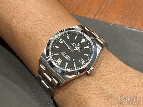 正規店でGMT-MASTER IIを狙っていますが、立ち寄ったクォークでEXPLORER Iが目に留まり、サイズ感とマットブラックの視認性の良さで214270をコレクションに加えました!GMT-MASTER IIの正規店購入を断念した際はまた相談しに来ます。