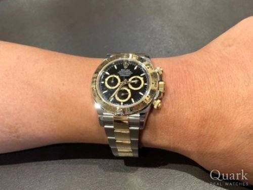 H様、この度はクォーク広島店をご利用いただき誠にありがとうございます。今回お選びいただいたデイトナは圧倒的知名度と人気でロレックス全体を牽引しているいわばリーダーのようなモデルです!イエローゴールドと黒文字盤の相性は抜群でH様の腕元にとてもよくお似合いでした!何か時計の事で今後お困りのことがございましたら全力でサポートさせていただきますのでお気軽にご相談くださいませ。