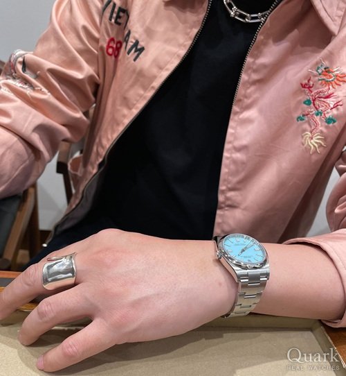 度々クォーク広島店をご利用くださいまして誠にありがとうございます。私も驚きました!まさかまさかのターコイズでしたね。然しながら、I様のアクセサリーのコレクションとの相性踏まえ、広い視野で眺めてみると最適な1本であったと振り返ります。エルプリメロのホワイト、ブラックに続いて鮮やかなカラーの1本、これからの展開から目が離せません笑。今後とも末長いお付き合いのほど、何卒よろしくお願い申し上げます。