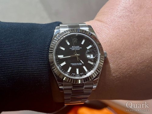 この度は、クォーク神戸店をご利用頂きまして誠にありがとうございます。お選び頂いたデイトジャストIIは、41ミリの迫力あるケースサイズが何よりも魅力となっております。そして、流通量が比較的少ないブラックローマダイヤルが素敵ですね。完全なブラックというよりは、チャコールグレーのような雰囲気です。N様に大変良くお似合いでしたので、末永くご愛用頂ければ幸いでございます。また、神戸にお越しの際はお気軽にお店に遊びにいらして下さい。今後とも、クォーク神戸店を何卒宜しくお願い申し上げます。クォーク神戸店 増田