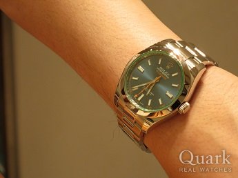 T様 この度はクォーク仙台店をご利用くださいまして誠にありがとうございます。Zブルーを眺めながらのお酒はいかがでしたか?着ける度に笑顔になるT様が大変印象的でございました。独特の色合いを持つグリーンサファイアクリスタルから覗くエキゾチックなブルーの輝き、通称『Zブルー』に一目惚れされるお客様は多いです。品薄状態が続く中で、タイミング良くT様にご案内できて私自身も大変嬉しいです。ご来店される前は『デイト付きモデル』でご検討されミルガウスは全く選択肢に入っていなかったとの事でございますが、Zブルーの魅力がT様の心を強く動かしたのだと存じます。周りと被らないスタイル、遊び心たっぷりのフェイスは間違いない一本だと確信しております。この素敵な出逢いをきっかけにロレックスライフを楽しんで頂けましたら幸いでございます。また、ご紹介いただきましたK様にも御礼申し上げます。周りの方もロレックスをご愛用されている方が多いとの事で、今後はロレックストークで盛り上がりますね!また、嬉しいコメントを頂きまして誠にありがとうございます。ブレス洗浄、サイズ調整を無料で承っておりますので是非ご利用くださいませ。また、近くにお越しの際はお店にも遊びに来てください。おふたりのかっこいいロレックススタイルを拝見させて頂ける日を心待ちにしております。今後とも末長いお付き合いの程、宜しくお願い申し上げます。