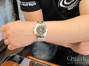 シンプルなオイスターパーペチュアルのピンク文字盤を考えていましたが、実際に時計を見て、他の人といっしょにならない黒文字盤のピンクにしました。