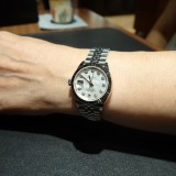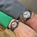 従来の26mmから2mm大型化された28mmケースを採用したステンレス製(SS)のレディース デイトジャスト。
