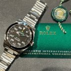 エアキングの誕生から70年以上、オイスターパーペチュアルの34mmラインへと引き継がれるまで変更のなかったケース径は堂々の40mmに拡大され、前モデルより採用された丸みを帯びたドームベゼルもスタイリッシュなスムースベゼルへと変更された。