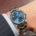 昔からブルーの文字盤に興味があったので、探して取り寄せてもらいました。