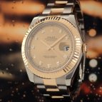 デイトジャストの36ミリではちょっと物足りなく感じ、色々なモデルで悩んでいましたが、デイトジャストII の41ミリの大きさが気に入りました。デイトジャストII にも沢山ありましたが、18KYGやダイヤの輝…