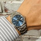 日常使いできるステンレスモデルを探していて、ブルーダイヤルとジュビリーブレスの組合せが気に入りました。