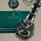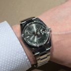 元々EXⅠを所持しており、今回は別色のダイヤルを探し、グレーに緑のローマ数字がロレックスならではだと感じ、この時計に決めました。