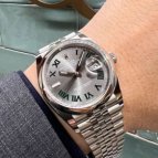 元々EXⅠを所持しており、今回は別色のダイヤルを探し、グレーに緑のローマ数字がロレックスならではだと感じ、この時計に決めました。