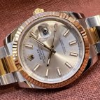 金と銀、フルーテットベゼルとオイスターブレスのコンビネーションがたまりません!