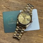 デイトジャストのコンビを使っていましたが、より良い時計が欲しいと思い、デイデイト イエローゴールド金無垢モデルの10Pダイヤ文字盤に買替えました!