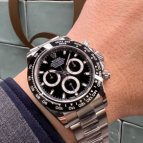 先日ついに購入!やっぱりセラミックベゼルのデイトナかっこいいです。白のデイトジャストを持っていたので、デイトナは黒を選択。セラミックとダイヤルが同じ黒でしまって見えて、ほんとにかっこいい。買って後悔はないモデルですね