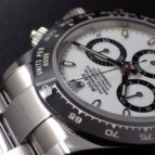 先日ついに購入!やっぱりセラミックベゼルのデイトナかっこいいです。白のデイトジャストを持っていたので、デイトナは黒を選択。セラミックとダイヤルが同じ黒でしまって見えて、ほんとにかっこいい。買って後悔はないモデルですね