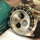 高級感と実用性のバランスが取れたデイトナでずっと探していました。素材とダイヤルカラーで悩みましたが、落ち着きのあるエバーローズゴールドとサンダスト文字盤に落ち着きました。