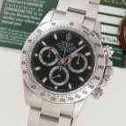 精巧な印象のブラックダイヤルは、インダイヤルのフレームとのコントラストによりデイトナのメカニカルなデザインを際立たせ、常にトップを争う圧倒的な人気を誇っている。