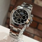 精巧な印象のブラックダイヤルは、インダイヤルのフレームとのコントラストによりデイトナのメカニカルなデザインを際立たせ、常にトップを争う圧倒的な人気を誇っている。