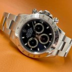 精巧な印象のブラックダイヤルは、インダイヤルのフレームとのコントラストによりデイトナのメカニカルなデザインを際立たせ、常にトップを争う圧倒的な人気を誇っている。