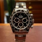 絶大な人気を誇るデイトナステンレス。ベゼルとの統一感のあるブラックダイヤルです。2026年1月に内部点検・外装仕上げを行っており、目立った傷もなく全体的に綺麗な状態です。