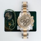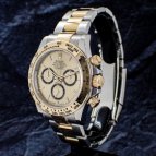 18Kイエローゴールドとのコンビモデルで、イエローゴールドと相性の良い、ゴールデンダイヤルのデイトナでございます。