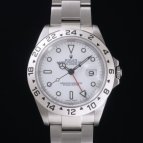 ホワイト文字盤のスポーツモデルが欲しかったのですが、種類は意外と少なく、デイトナは予算オーバーで手頃なものを探していたところエクスプローラーIIを発見。現行モデルとも悩みましたが、私の手首にフィットするのはコチラでした。ホワイト文字盤は清潔感があって、スーツにも合わせやすく重宝しています。