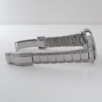 さらにブレスレットに関して特筆すべきは、無垢のコマを採用したことで堅牢性が格段にUPしたことであり、これにより永年の使用におけるブレスの伸びという問題も軽減されることと思われる。また、バックルにイージーリンクを備え、簡易な微調整が容易に行なえるようになった点もこのブレスの特筆すべき利点である。
