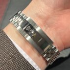 人気の青黒ベゼル×ジュビリーブレス。2026年3月にオーバーホール・外装仕上げを行っております。バックルサイドに小さな打痕が見られますが、その他は多少の小傷のみのコンディション良好の一本です。