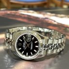 先日はとても親切、丁寧にご対応頂き、ありがとうございました。「時計メーカのちゃんとした時計が欲しい」と思っていたのですが、時計にウルサイ主人が、「機械式じゃなきゃダメだ!」と言って、ロレックスになりました。高い買い物ですが、アフターもきちんとしていて安心できます。次は主人とペアにする為、貯金します。大切に使って娘にいつか譲りたいですね。実は1歳の子がいるのですが、子供と一緒だと腕時計って子供を傷つけそうで(角張りとか、ブレス部分とか)外すんですが、ジュビリーブレスも本体も角張りが無いのでノンストレスなんです。育児にも適してる!すごいです。出産祝いのごほうびにも良いですね。 - 2016.10.8 東京都 Y.Y様