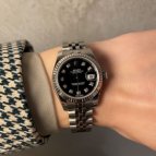 主人から誕生日プレゼントとして買って貰いました。ブラックのダイヤルとダイヤモンドの組み合わせがお気に入りです。既に持っている時計と合わせて長く使っていきたいと思います。
