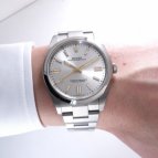 以前はオイスターフレックスの時計を所有しておりましたが、もう少し落ち着いた時計が欲しくて買い替えを決めました。シンプルな中に高級感もあるデザインが良く、試着をして即決をしてしまいました。